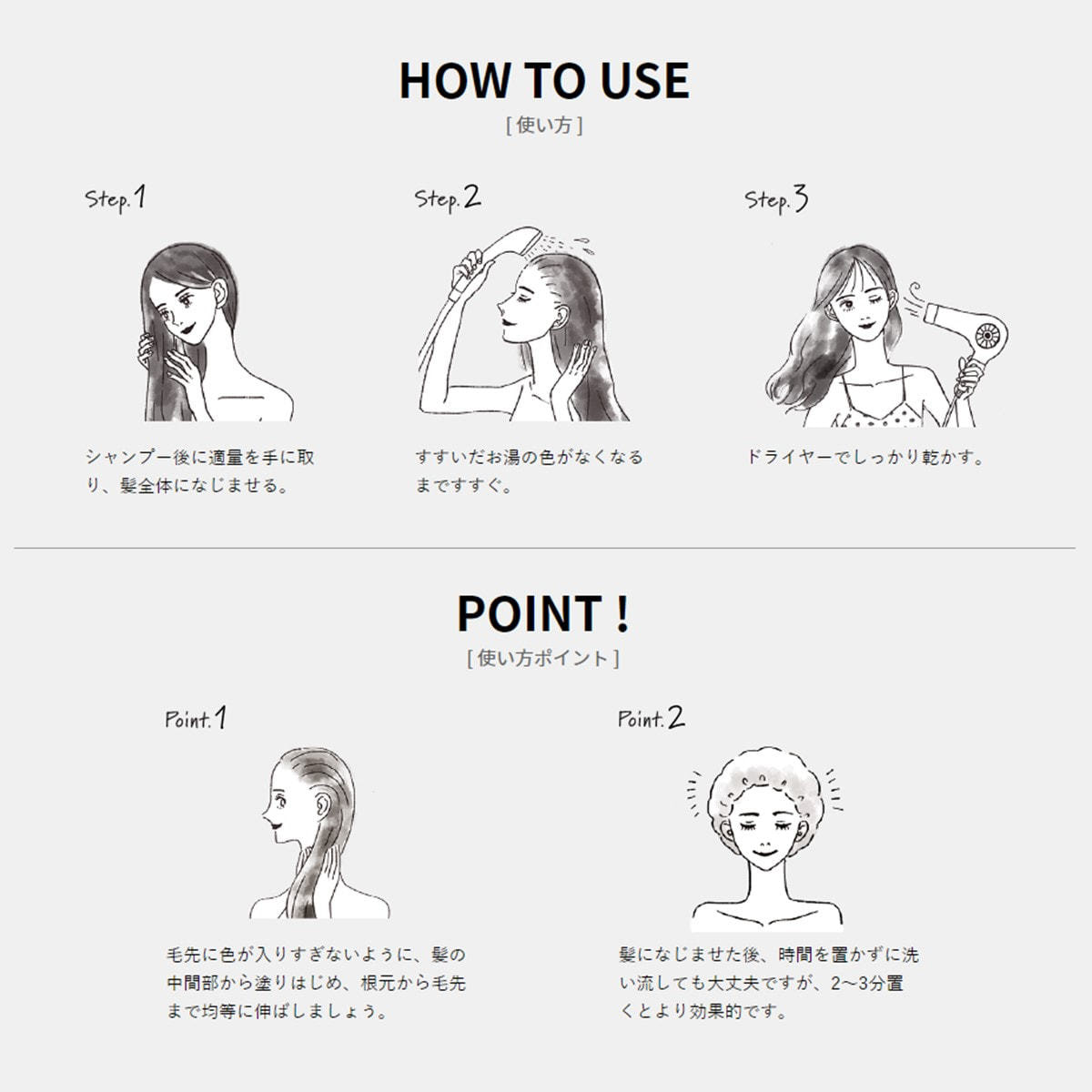 2〜3分置いてから洗い流すとより効果的です。
